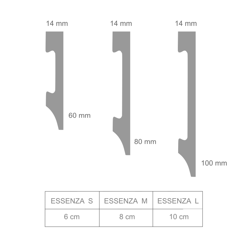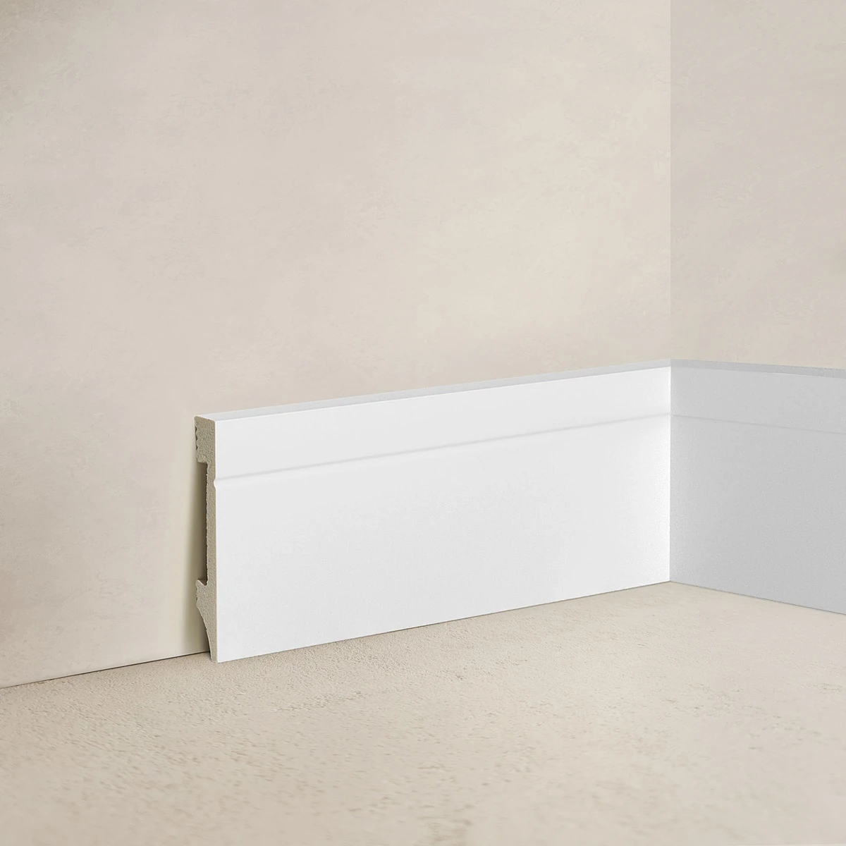 Soklová lišta Essenza je vynikajúcou voľbou pre milovníkov moderných a minimalistických interiérov. Jej jednoduchý, geometrický tvar a dokonale hladký povrch ju robia ideálnou voľbou pre loftové, škandinávske a industriálne interiéry. Dostupná v troch veľkostiach umožňuje dokonalé prispôsobenie výške steny a individuálnym dizajnovým potrebám.
