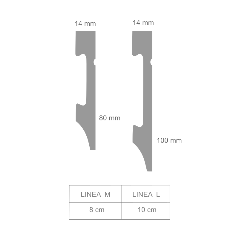 Soklová lišta Linea je ideálna pre tých, ktorí si cenia nadčasový dizajn a decentné detaily. Jemné frézovanie jej dodáva ľahký vzhľad a robí z nej perfektný doplnok do interiérov v klasickom, newyorskom a modernom klasickom štýle. Je dostupná v dvoch veľkostiach, takže sa dá ľahko prispôsobiť rozmerom vášho interiéru. Linea je klasické riešenie s všestranným využitím.