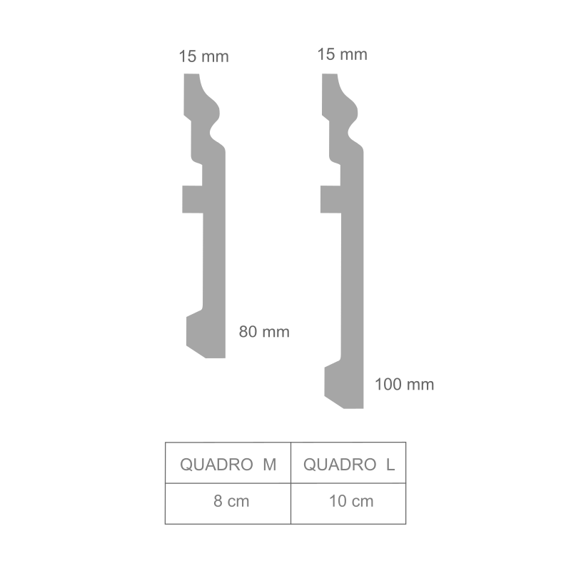 Soklová lišta Quadro ponúka klasickú eleganciu v novej verzii. Jej výrazné dekoratívne frézovanie skrášli interiéry v klasickom, glamour alebo modernom klasickom štýle. Soklová lišta Quadro, ktorá je dostupná v dvoch veľkostiach, sa dá ľahko prispôsobiť veľkosti vášho priestoru.